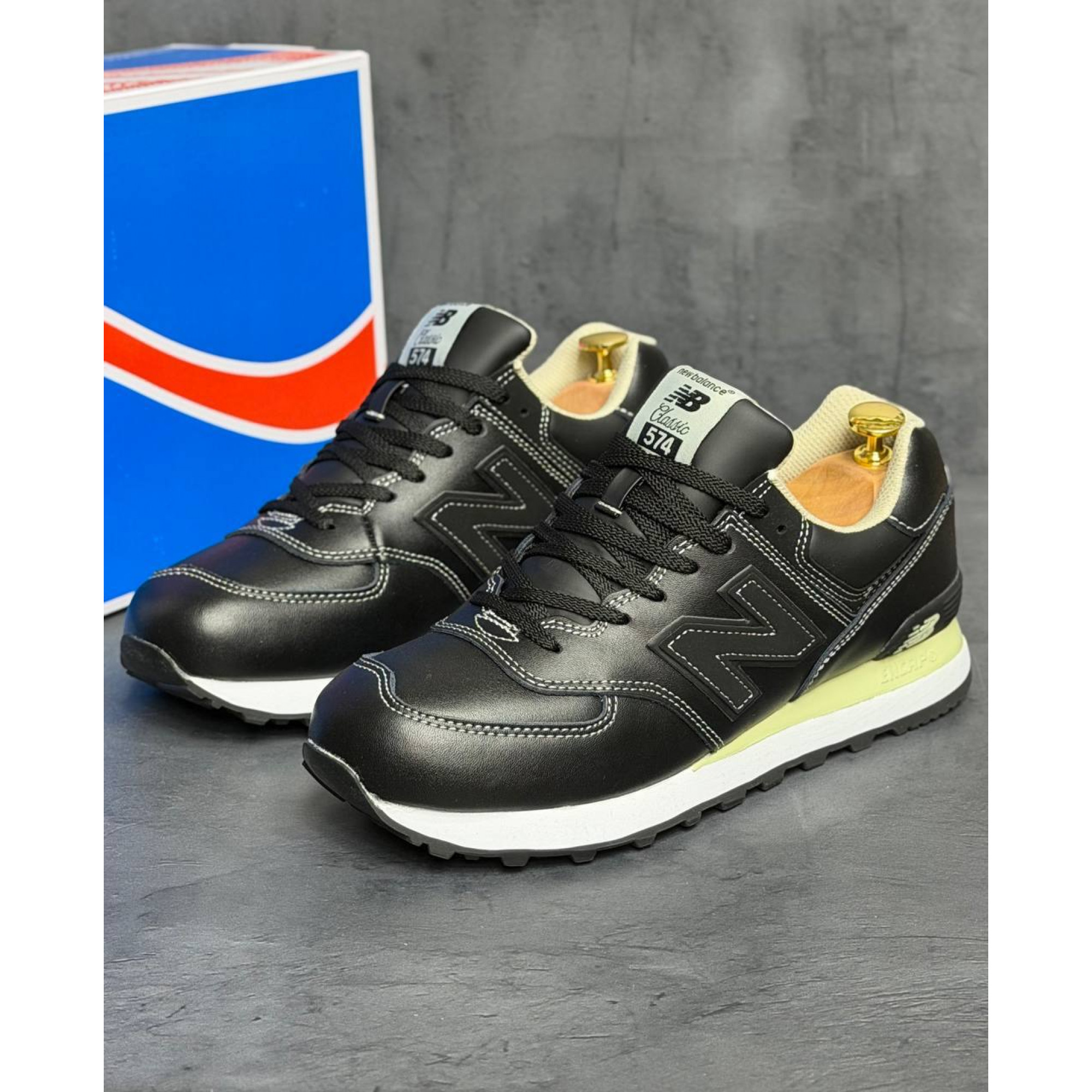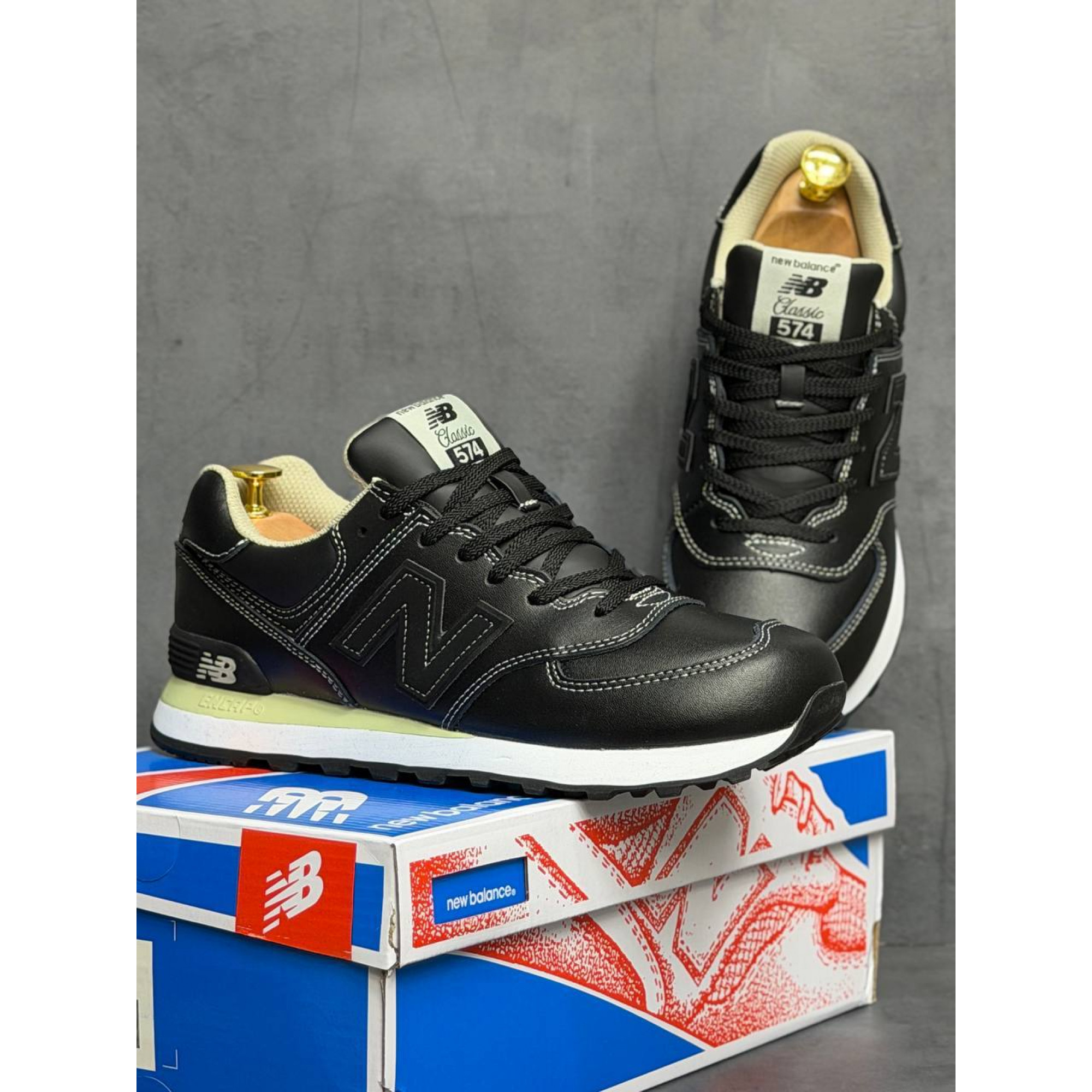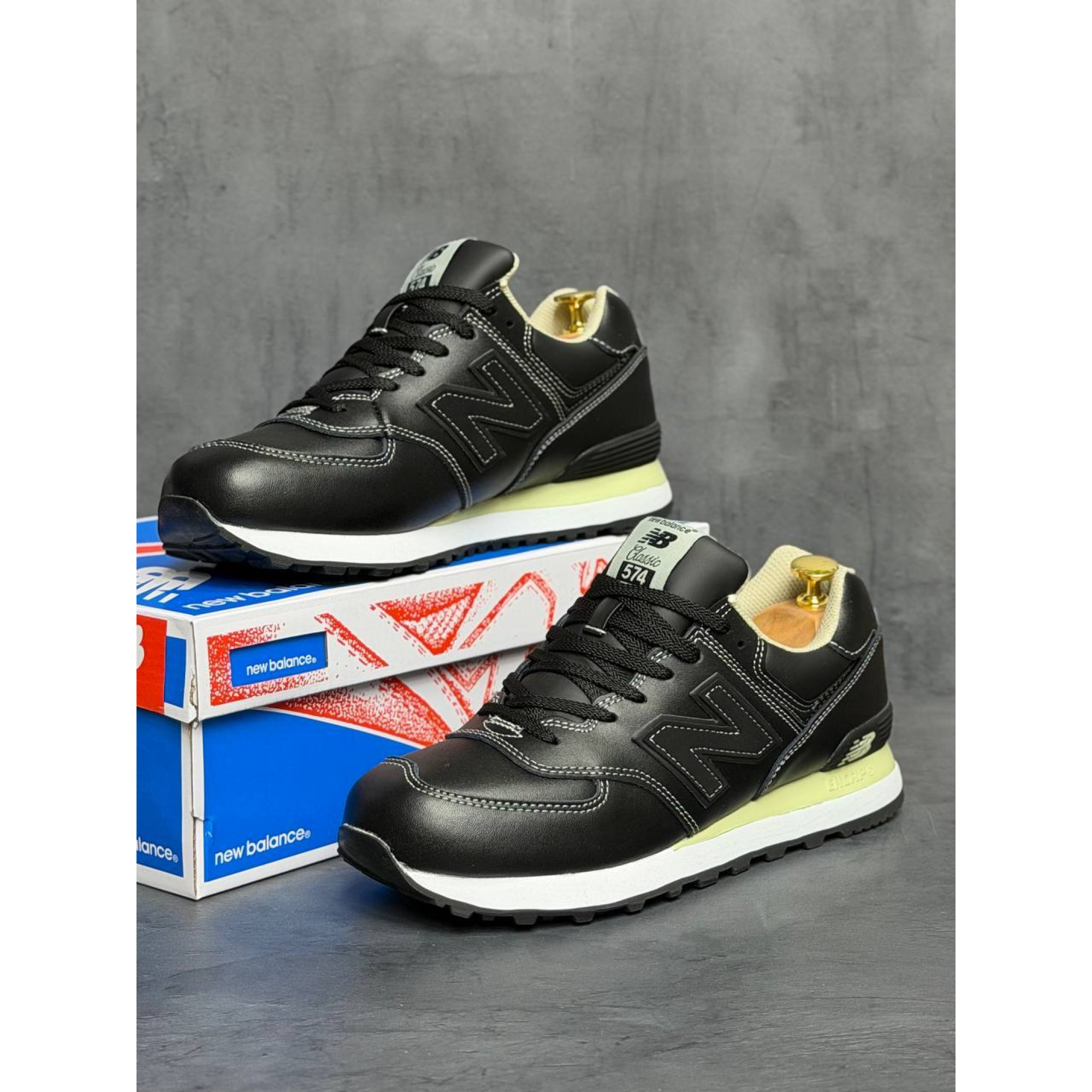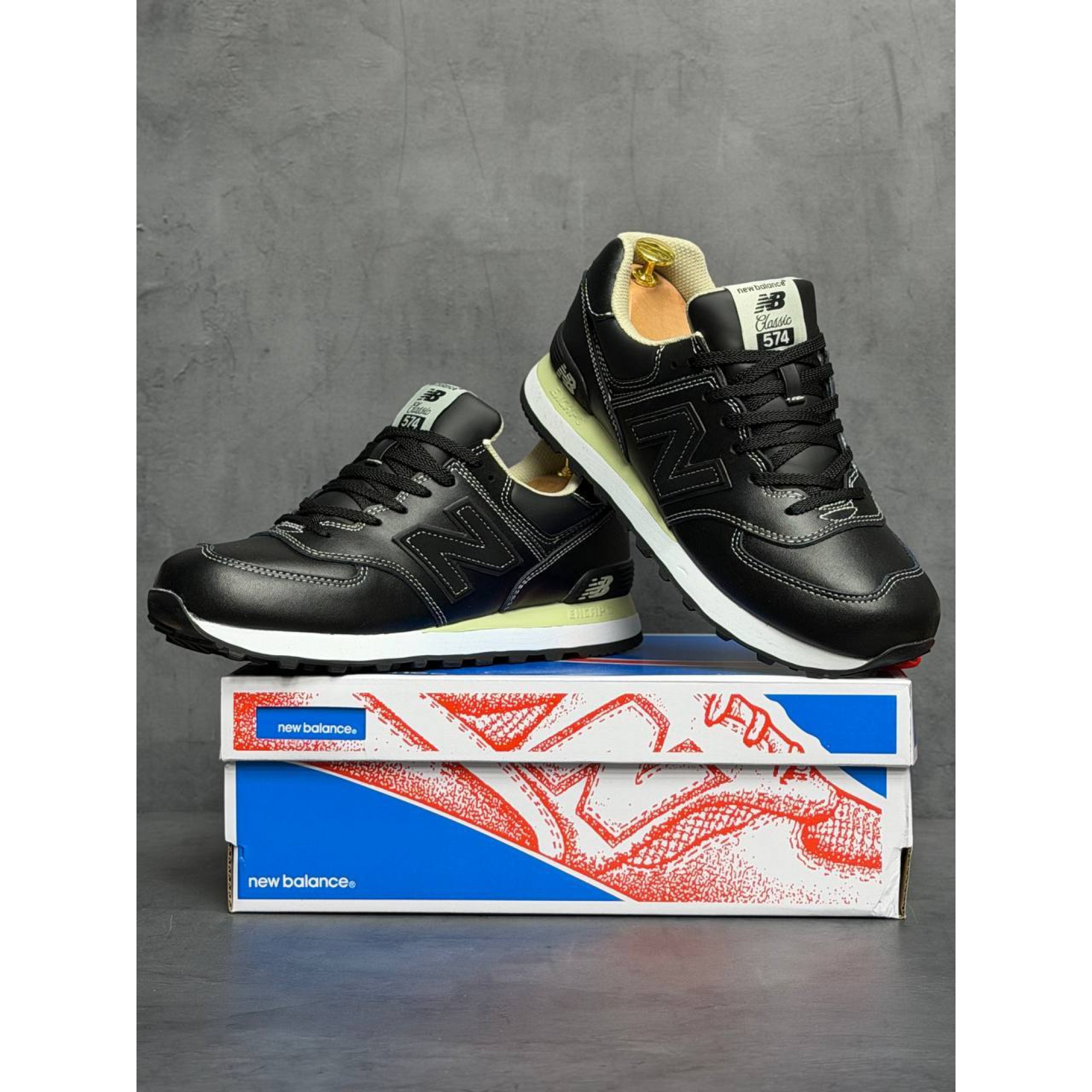 New Balance 574 Triple Black Кожаные